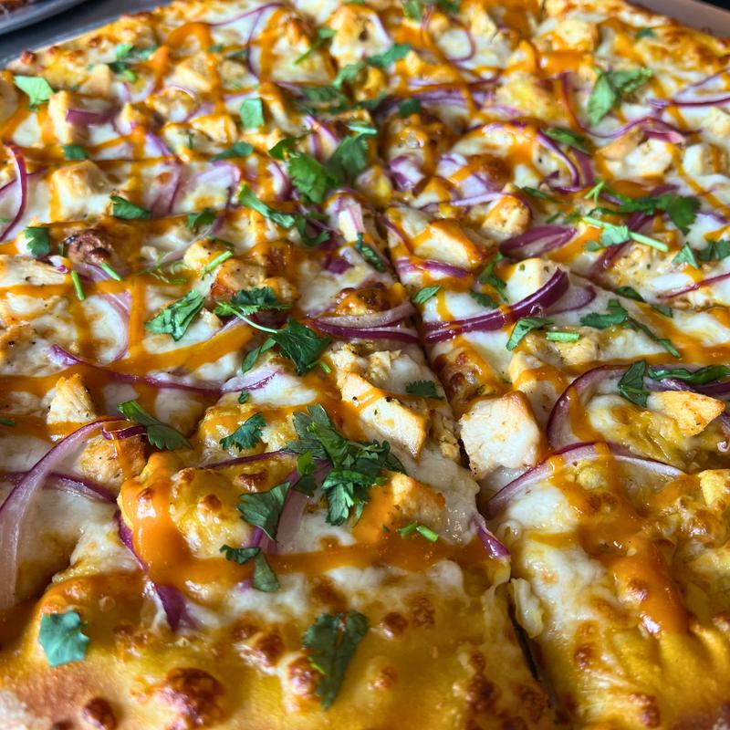 16'' $29.00 | 20" $46.00 | 28" $71,00 • House-marinated BBQ chicken, garlic, smoked paprika with tangy BBQ base, mozzarella, and red onion. Finished with fresh cilantro.